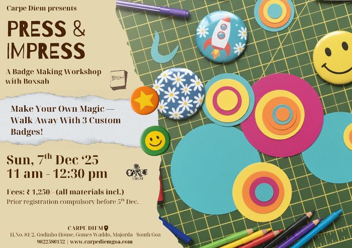 To register: https://carpediemmajorda.myinstamojo.com/product/press-impress-a-badge-making-workshop/