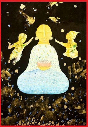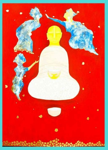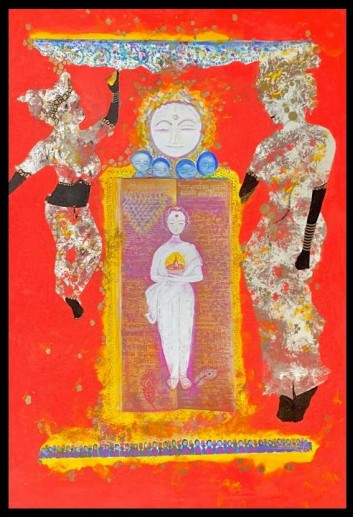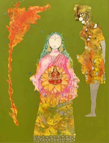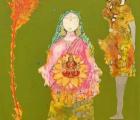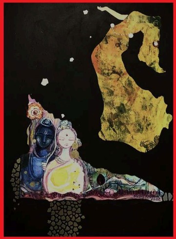 Her works open a window into a world woven with fairy tales, childhood memories, poems, nature, animals and depictions of Hindu Gods and Goddesses. Through her masterful use of colour, she conveys calmness, serenity, and the joy of living. Some paintings are rendered in subtle monochromes, where a single hue flows gracefully from dark to light, while others burst into vibrant symphonies of colour. Often, Naik employs brilliant shades and expressive words to narrate the different phases of a woman’s growth, in close correlation with nature and spiritual evolution. Her art invites viewers into a realm where fantasy and reality merge, offering both beauty and reflection.