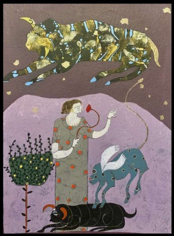 Her art often portrays the mystical beauty and elemental force of nature while exploring themes of love, peace, and human sensitivity. Through her paintings, she seeks to reveal the shared energy within men and women to connect with their inner selves. A self-confessed dreamer, her work offers a magical and poetic escape while also standing against forces of destruction and war that diminish life’s beauty.