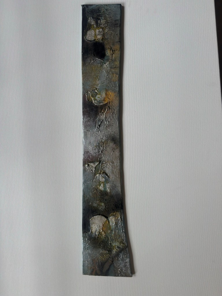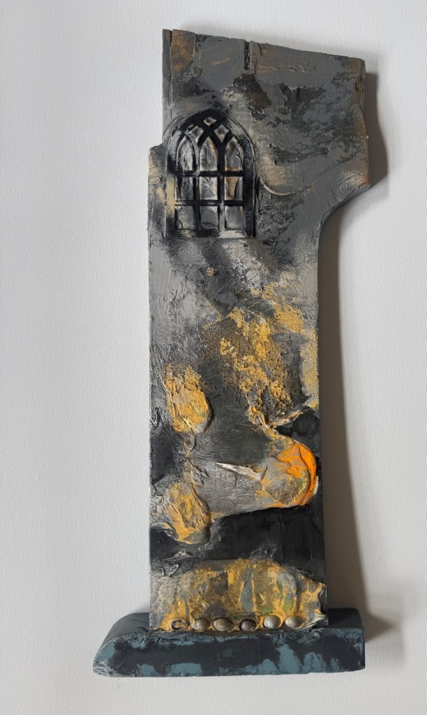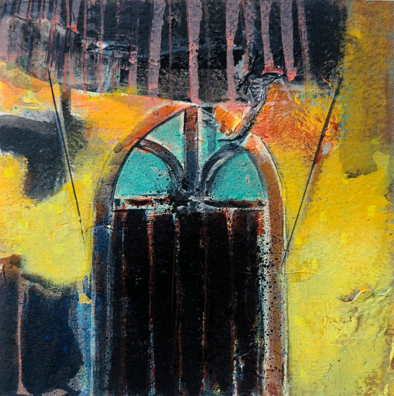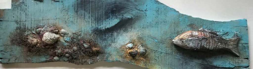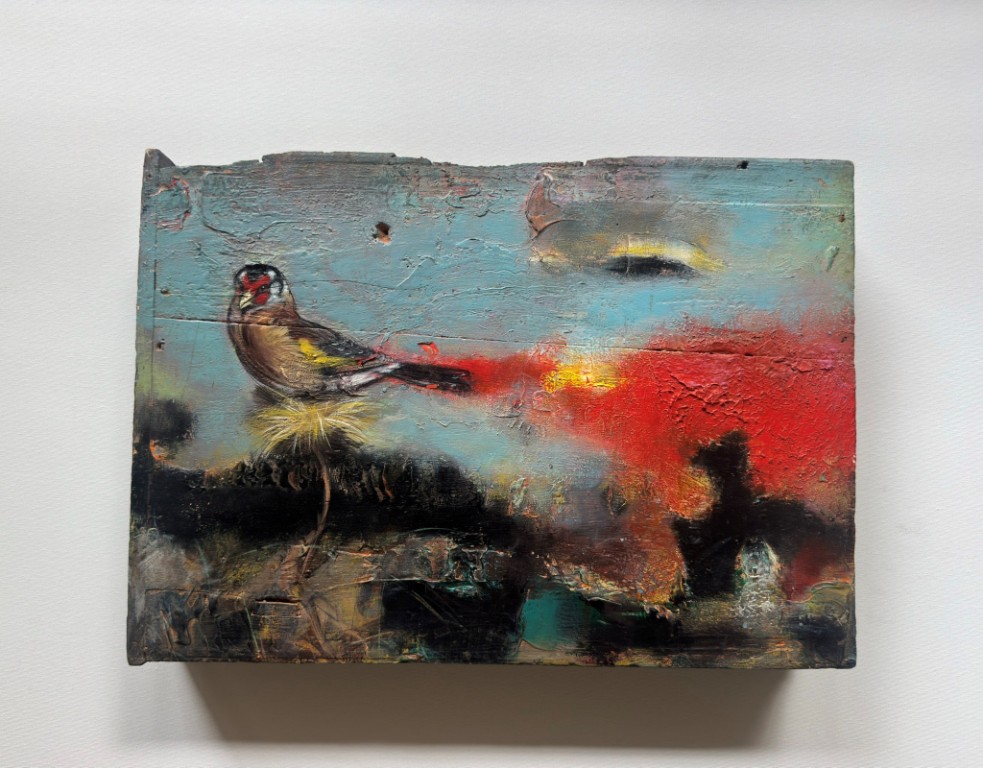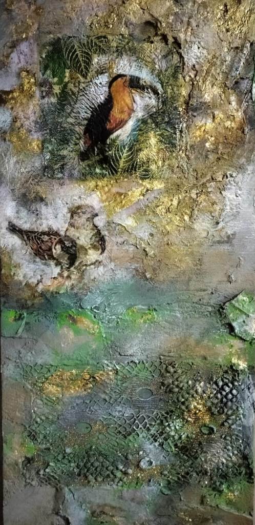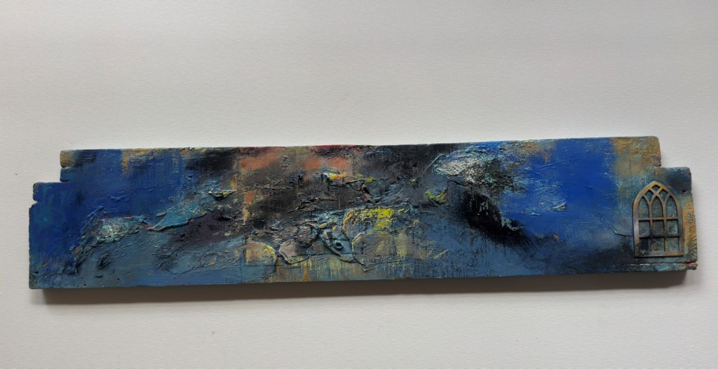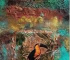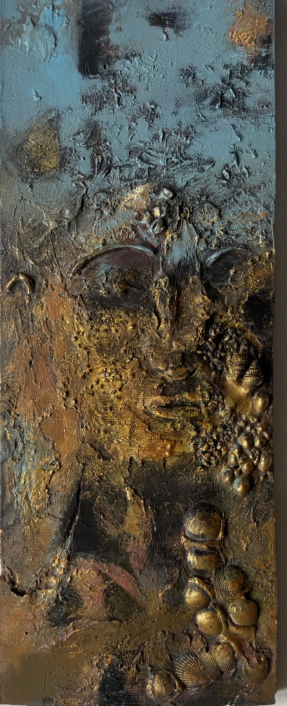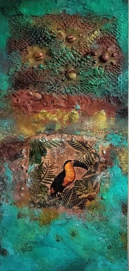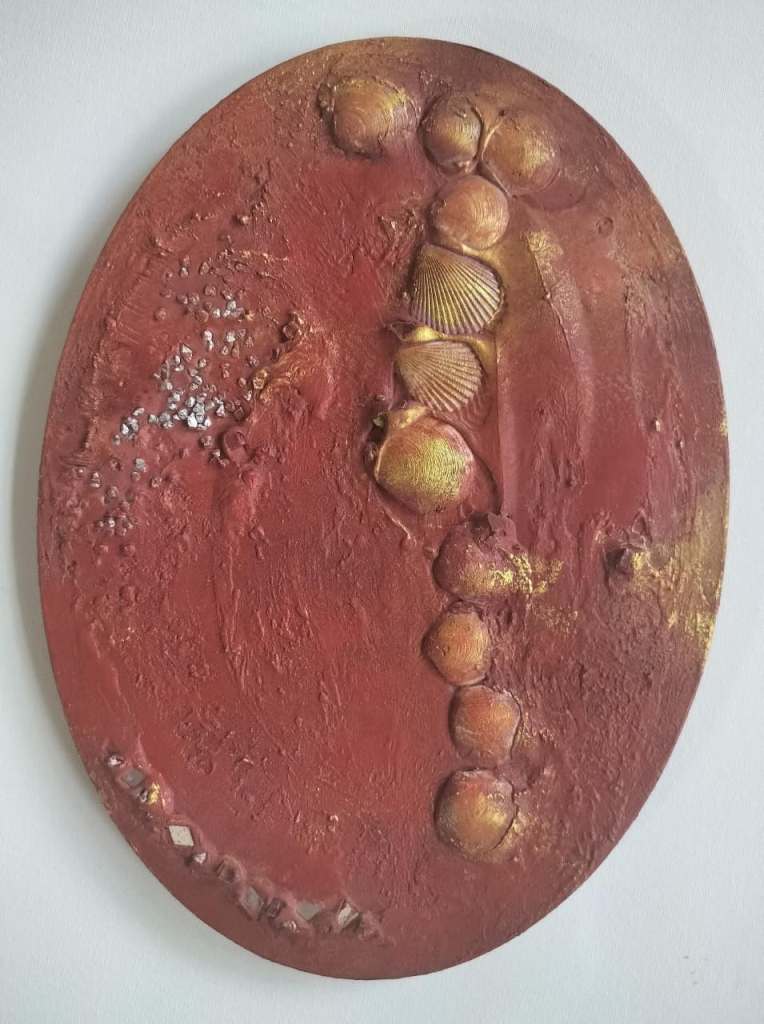 Across his body of work, Shetye attempts to paint a world that extends beyond the physical one—a space where the inner and outer realms intertwine. God-made nature and man-made structures, two forces that shape human existence, have left deep impressions on him. Their contrasts, their harmonies, and their silent dialogues become visible through his paintings. Layered compositions blur foreground with background, history with memory, and the tangible with the dreamlike, much like Goa’s own overlapping stories. His use of mixed media—textures, fabrics, metals, and found objects—adds physical depth and symbolic nuance, creating canvases that feel alive and multidimensional.