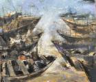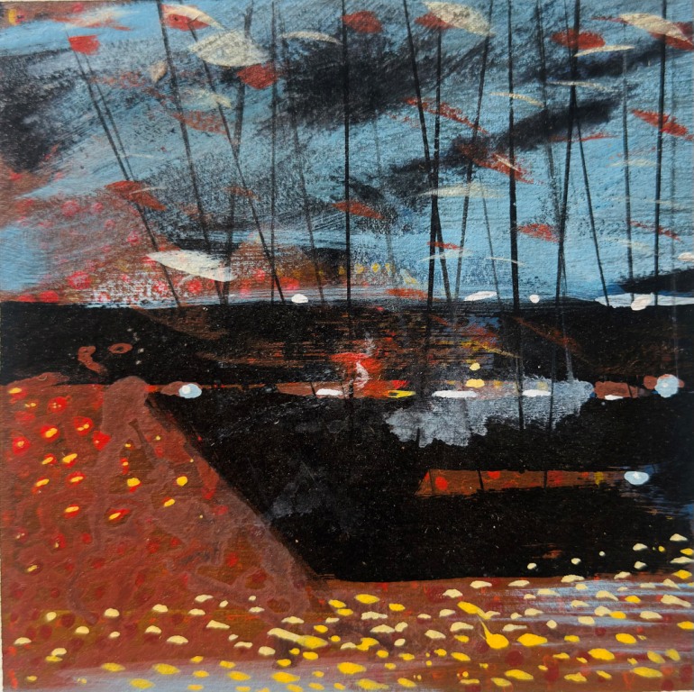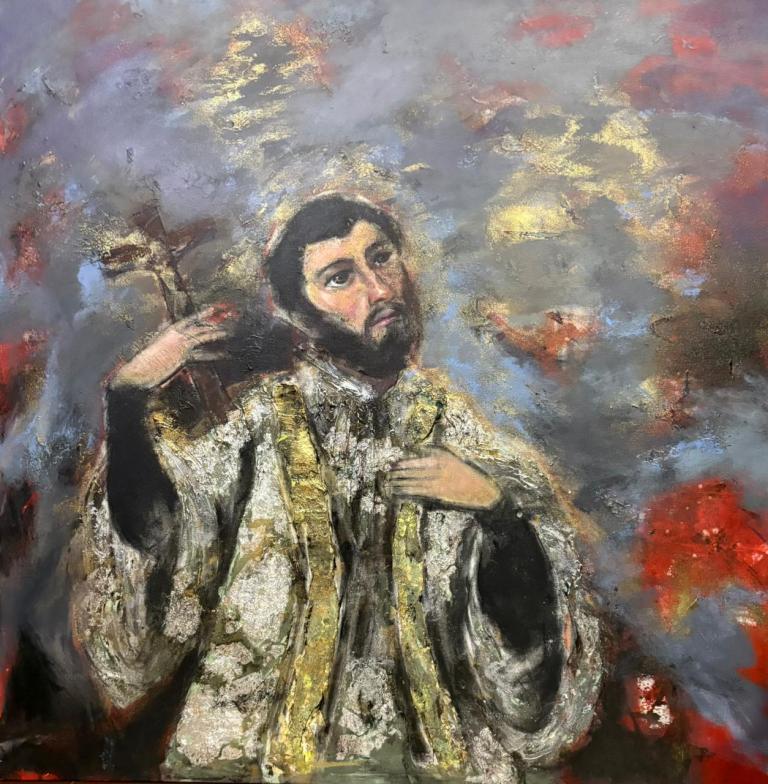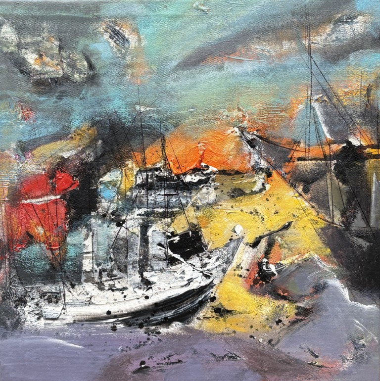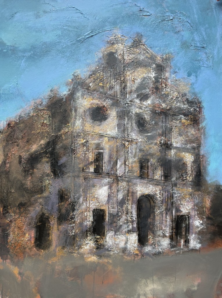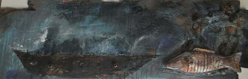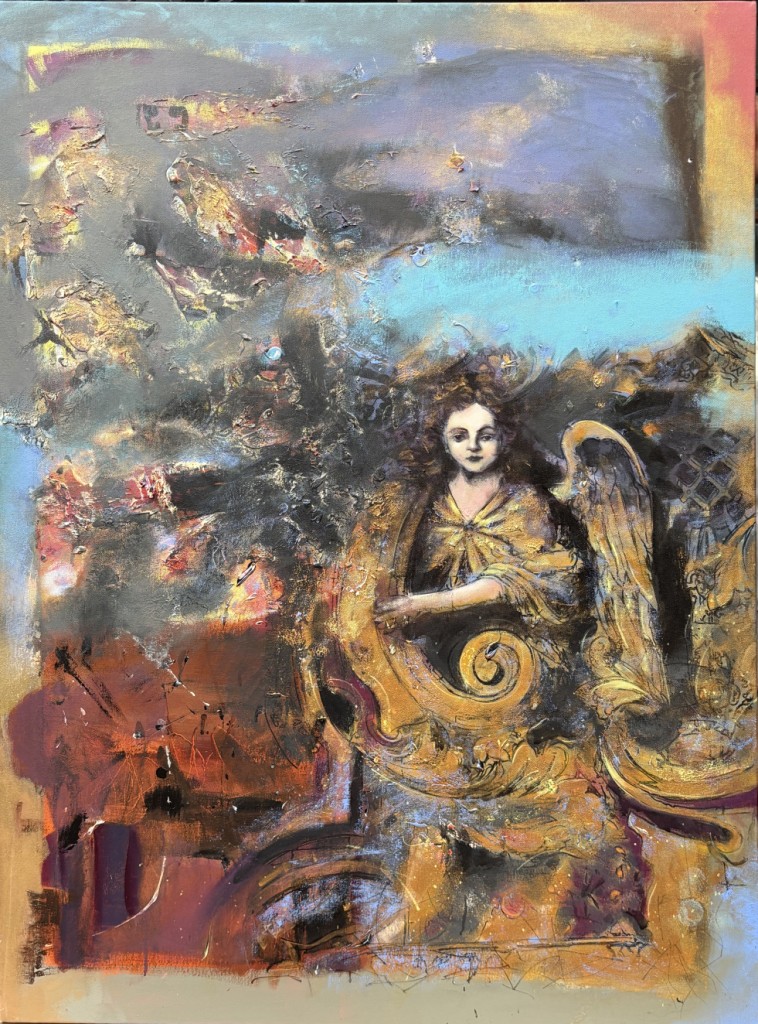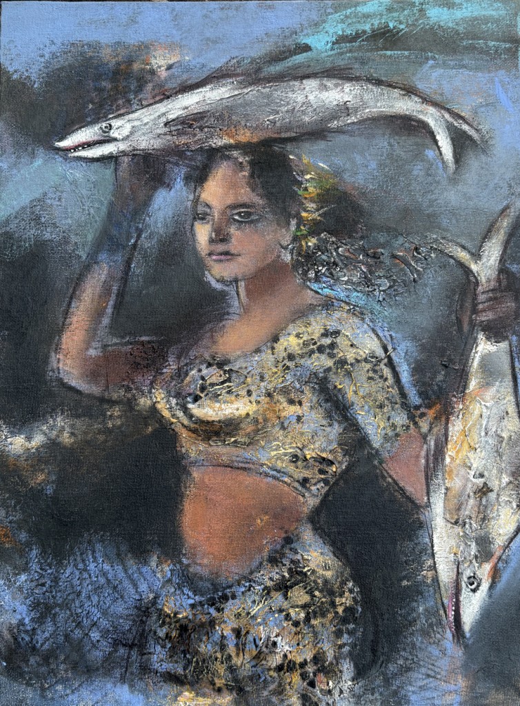 The exhibition immerses viewers in Goan life: the salty air heavy with feeling, the play of warm sunsets over the Arabian Sea, floating boats drifting across deep waters, and delicately adorned monuments watched over by angels symbolising purity and innocence. Colours flow like tides, shifting with spontaneity, mirroring both the sea’s temperament and the artist’s improvisational process.