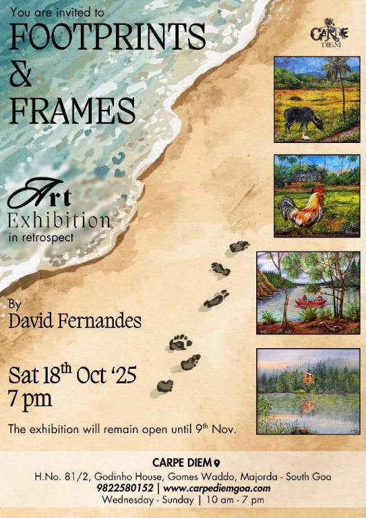 The opening of “Footprints & Frames”, a solo art show by David Fernandes will be on Friday, 18th October 2025 at 7 pm at Carpe Diem Art Gallery, Majorda, South Goa. The exhibition will continue be on display until 9th November 2025.