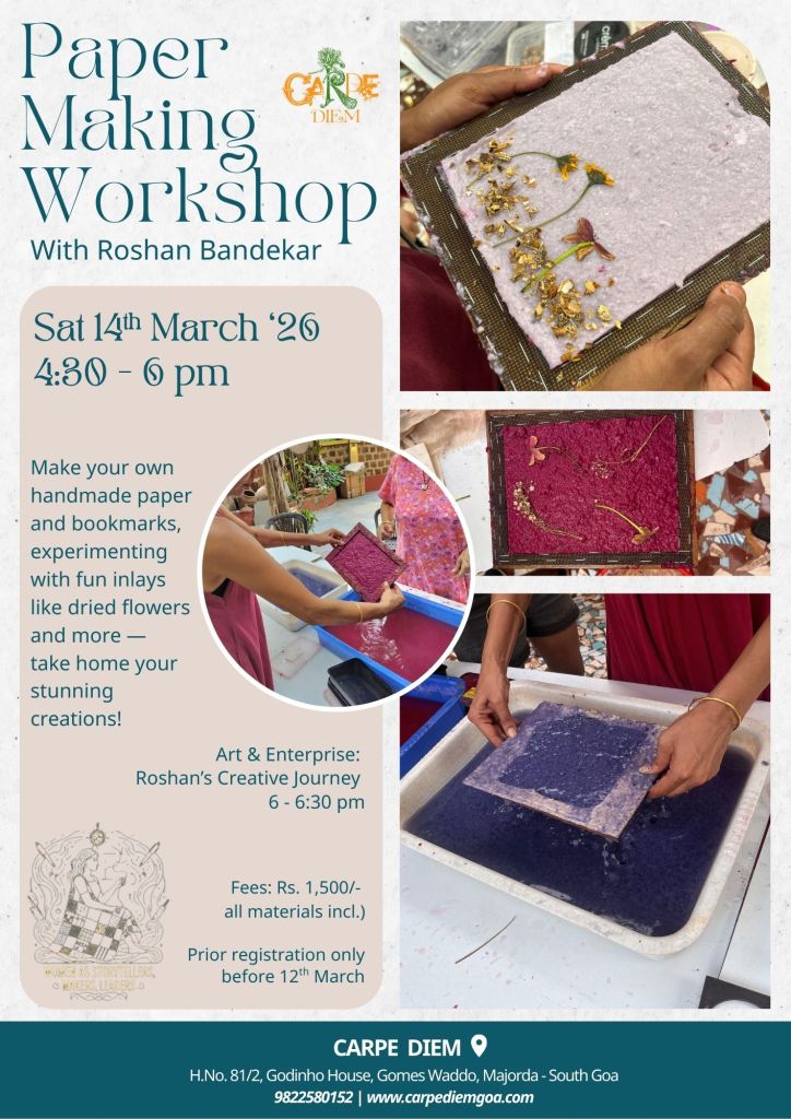 To book your seat: https://carpediemmajorda.myinstamojo.com/product/paper-making-workshop-23e3b/